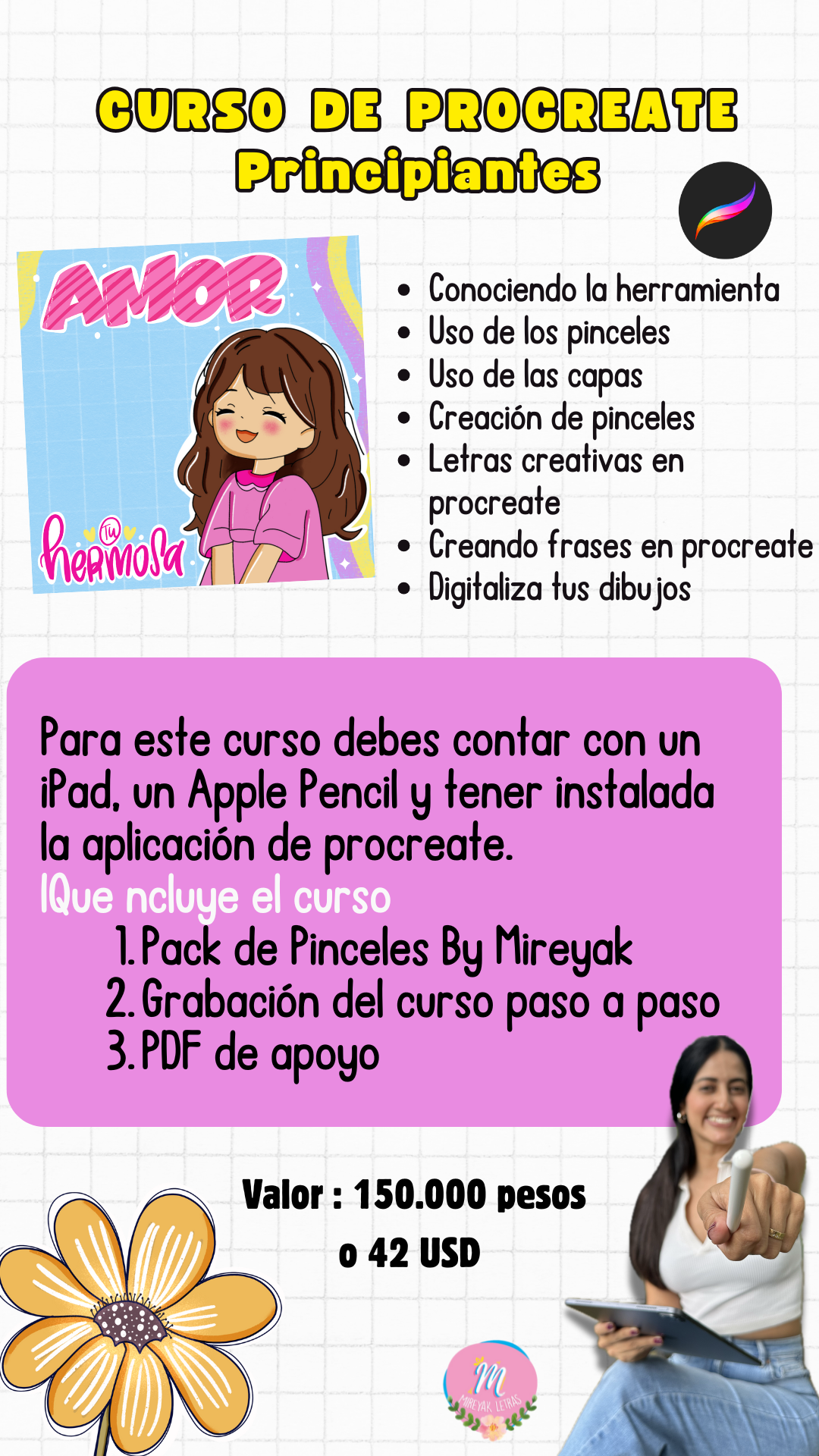 Para este curso debes contar con un iPad, un Apple Pencil y tener instalada la aplicación de procreate.